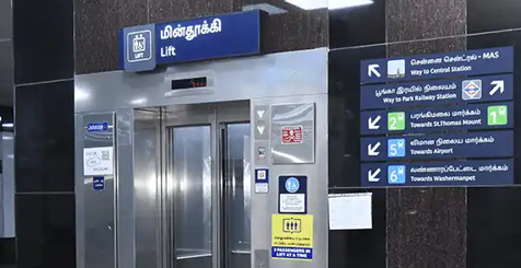 Οι επιβάτες μπορούν να εισέλθουν αποτελεσματικά και άνετα σε σταθμούς, να μεταφερθούν ή να εξέλθουν από σταθμούς παίρνοντας κάθετους ανελκυστήρες. Το τεχνικό επίπεδο των κινητήρων του ανελκυστήρα παίζει βασικό ρόλο στη διασφάλιση της οδηγικής εμπειρίας των επιβατών. Η Nidec KDS ασχολείται βαθιά με την αυτοκινητοβιομηχανία για περισσότερα από 60 χρόνια. Τα προϊόντα της ενσωματώνουν διεθνώς προηγμένο τεχνολογικό σχεδιασμό, εξαιρετική παραγωγή και διαχείριση ποιότητας. Με προϊόντα υψηλής ποιότητας και ένα ολοκληρωμένο σύστημα εξυπηρέτησης, παρέχει σταθερά μηχανήματα έλξης ανελκυστήρα για μεγάλους Ινδούς πελάτες σε έργα μετρό για περισσότερο από μια δεκαετία.
