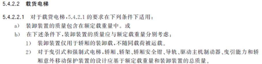 Οι μηχανές έλξης ανελκυστήρων φορτίου έχουν μεγάλη χωρητικότητα φορτίου και απαιτούν υψηλότερο φορτίο άξονα από τις συμβατικές μηχανές έλξης, πράγμα που σημαίνει ότι χρειάζονται μεγαλύτερη ελκτική δύναμη και πιο ανθεκτικές στη φθορά τροχαλίες έλξης κατά τη λειτουργία υψηλής ταχύτητας. Το πιο πρόσφατο GB/T 7588.1-2020 ορίζει ότι κατά την υιοθέτηση της 5.4.2.2.1(b) (δηλαδή, λαμβάνοντας υπόψη τη μάζα της διάταξης προστασίας φόρτωσης και εκφόρτωσης και το ονομαστικό φορτίο ξεχωριστά), προβάλλονται υψηλότερες απαιτήσεις για το φορτίο άξονα της μηχανής έλξης, την ικανότητα πέδησης (ιδιαίτερα όταν η κίνηση στο άκρο είναι κλειστή χωρητικότητα, η οποία πρέπει να υπολογιστεί και να επαληθευτεί ανεξάρτητα.